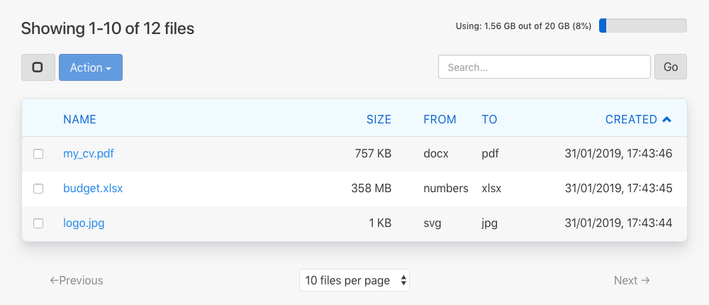 Here's a sneak peak of what your personal inbox in Zamzar will look like: